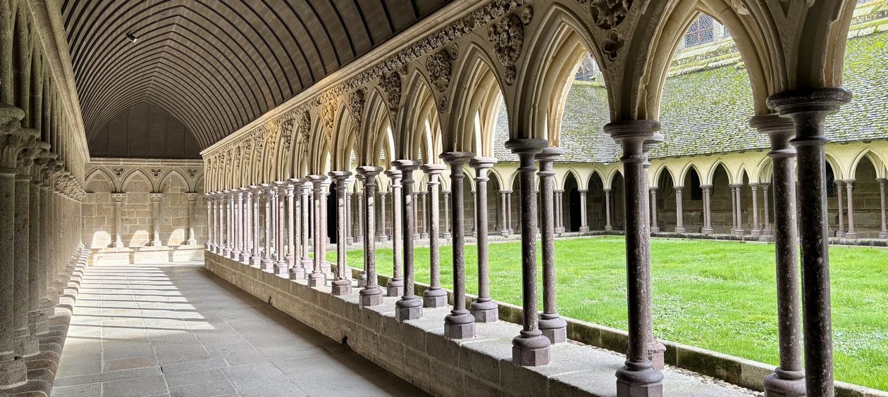 Il relie deux hauts lieux spirituels : Saint Martin, figure fondatrice du christianisme en Gaule, et Saint Michel, archange protecteur et guerrier. À Tours, le culte de Saint Martin attire très tôt des pèlerins venus de toute l’Europe. La ville devient un point de départ naturel vers d’autres sanctuaires, dont le Mont-Saint-Michel. En quittant la vallée de la Loire, le chemin traverse le Maine, territoire longtemps disputé entre Anjou, Normandie et Bretagne. Villages, églises romanes, croix de chemins et prieurés marquent ce paysage façonné par la foi et l’organisation féodale. Le passage par Le Mans, cité gallo-romaine majeure, constitue une étape essentielle. Sa cathédrale Saint-Julien et son enceinte antique rappellent l’ancienneté du peuplement et le rôle religieux et stratégique de la ville. Plus au nord-ouest, forêts et plateaux du Maine et de la Mayenne offrent un cheminement ponctué de chapelles rurales, de fontaines christianisées et de châteaux, témoins d’une terre de frontières. En Mayenne, la forteresse carolingienne de Mayenne illustre la défense des marges du royaume, tandis que la dévotion mariale accompagne les pèlerins. Enfin, l’entrée en Normandie conduit vers la baie et la silhouette du Mont-Saint-Michel, sanctuaire fondé au VIIIᵉ siècle, symbole de la puissance spirituelle et du rayonnement médiéval.